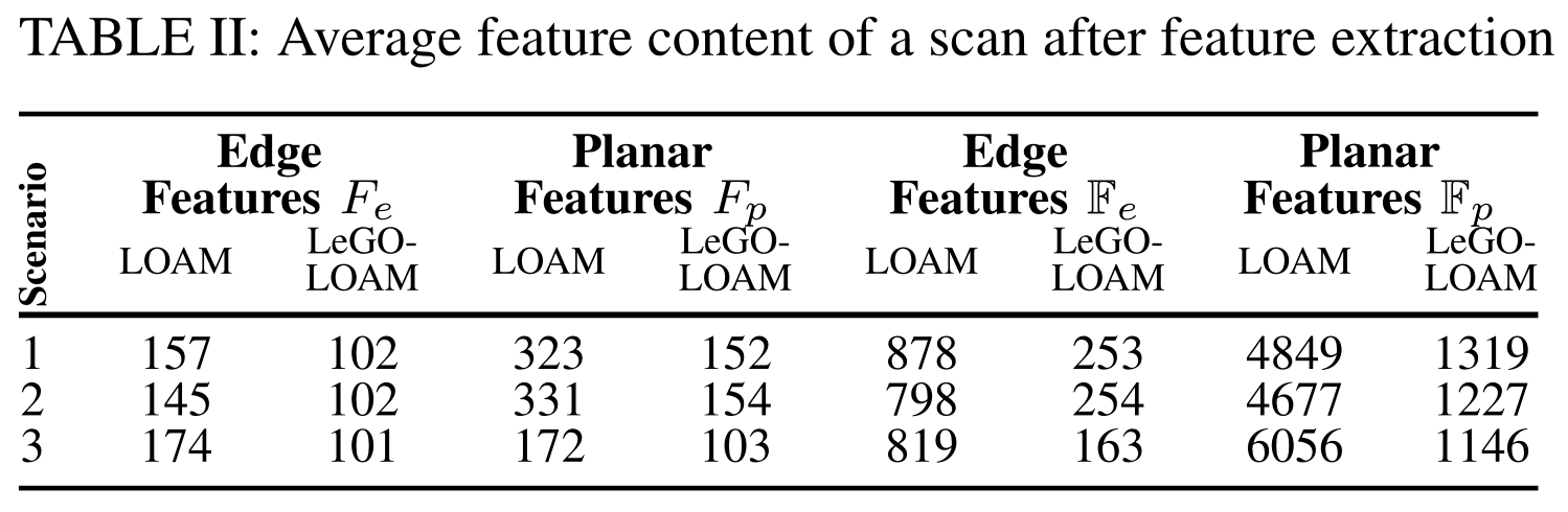 集合,LeGO-LOAM需要处理的特征数量分别减少了至少29%、40%、68%和72%。
