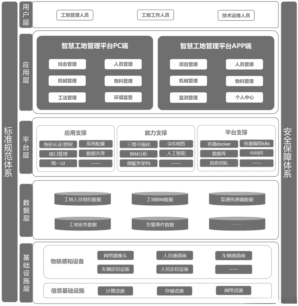随着城市建设不断深化, 各类建设工程项目的规模持续扩大, 针对施工现场面积大、人员密集、设备物资分散以及管理流程繁杂等特点, 常规的手工巡视和纸质记录的方式已经难以满足大型工程项目管控的需求。通过运用信息化手段推动监管模式创新, 全面解决施工现场存在的监管力度不足和手段滞后等问题, 已成为项目建设方必须采取的重要举措。近年来, 国家陆续出台了一系列政策来推动施工现场信息化建设