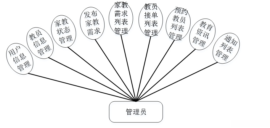 管理员具备用户资料维护功能以及教师资料维护功能,并且能够进行家教状态监控工作。该系统能够发布教师需求,并生成教师待求服务列表;同时支持订单生成功能;能够处理教师待接订单维护以及教师待约客户维护工作;系统还包含各阶段试题管理和教育资讯管理系统等模块功能