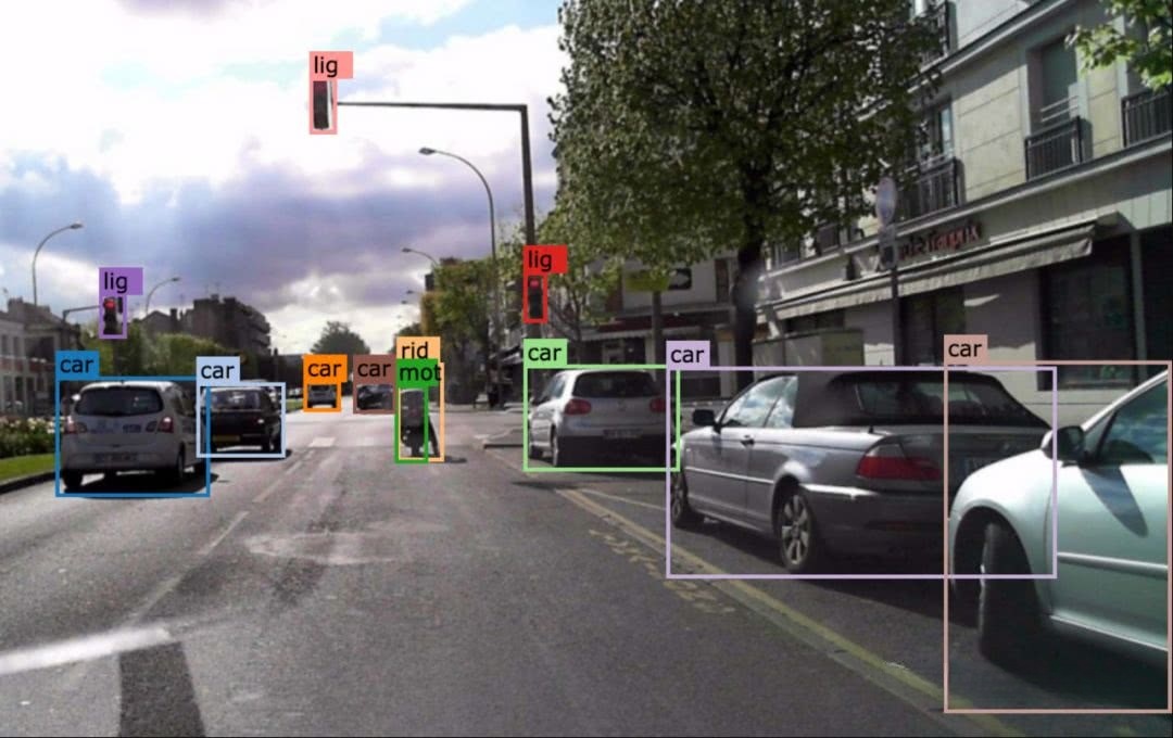 2. 马路目标检测数据:标注超过100,000张图像,类别包含公共汽车,交通灯,交通标志,行人,自行车,卡车,摩托车,小汽车,火车和骑手;
