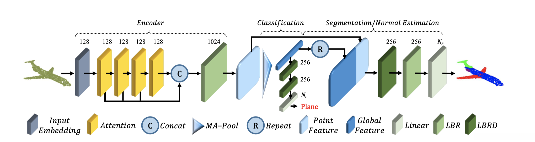在法线估计中采用分割体系结构,并未对类别进行编码;其输出结果可视为各点处的法向量。