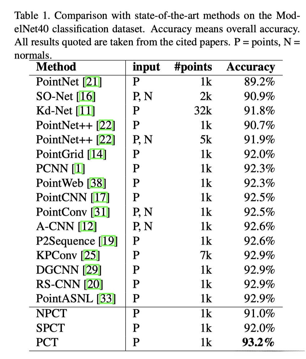 实验表明,PCT具有良好的语义特征学习能力,并且在多项任务(尤其是形状分类,零件分割和法线估计)上均具有最先进的性能。