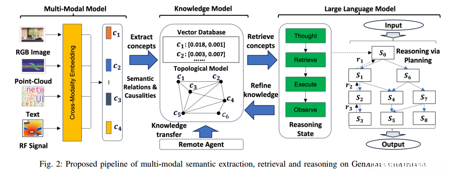 图2:在GenAINet代理上提出的多模态语义提取、检索和推理管道。
