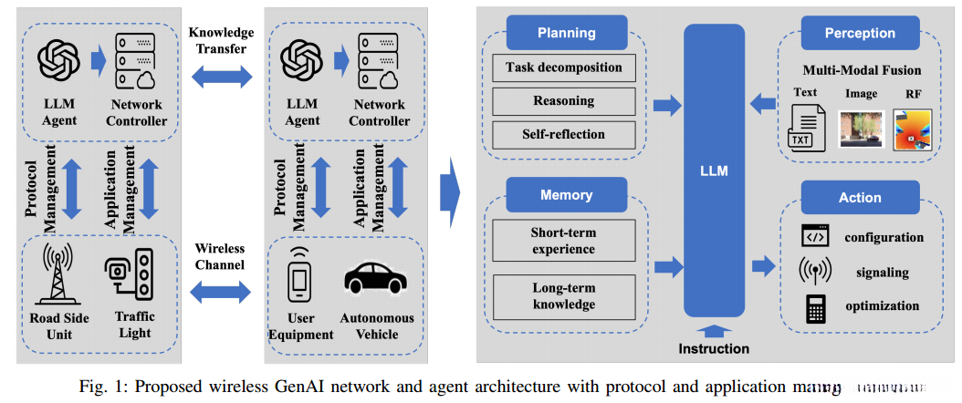 图1:提出的无线GenAI网络和具有协议和应用管理的代理体系结构。