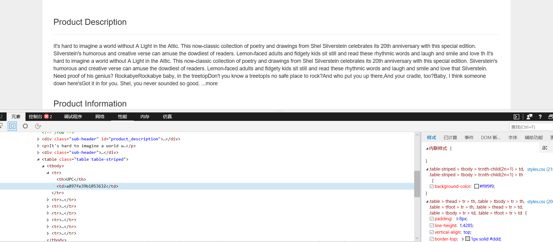 1、其中每本书的信息包括:书名、价格、评价等级、产品编码、库存量、评价数量。