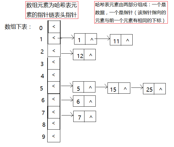 数组元素代表的是由相同下标的哈希表元素构成的单链表。因为单链表有带头结点和不带头节点之分。所以数组元素可以是链表的头结点,也可以是链表的头指针。如果是带头结点的单链表,此时需要将头结点的指针域置为NULL,数据域任意。如果不带头结点,此时需要将头指针置为NULL。这两种情况均用来表示空链表。在本文中,采用不带头节点的单链表。即数组元素为链表的头指针。