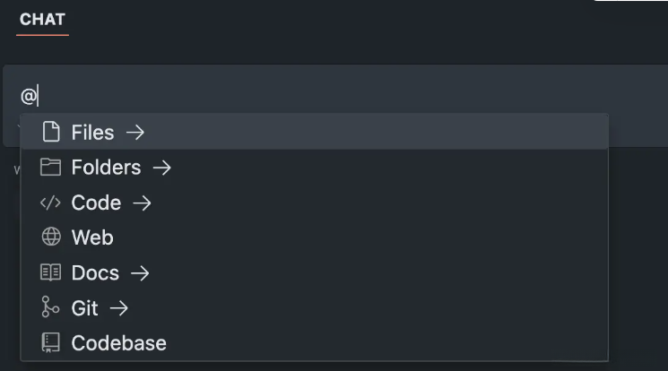 在这里提问可以仅针对当前文件、文件夹、图片、文档、网络或者整个 codebase