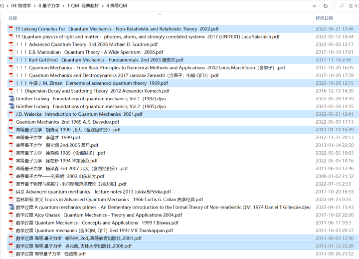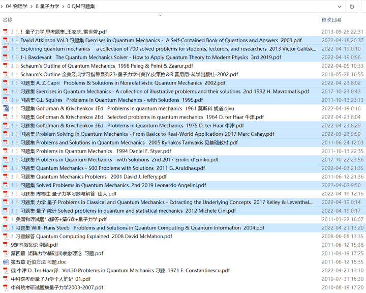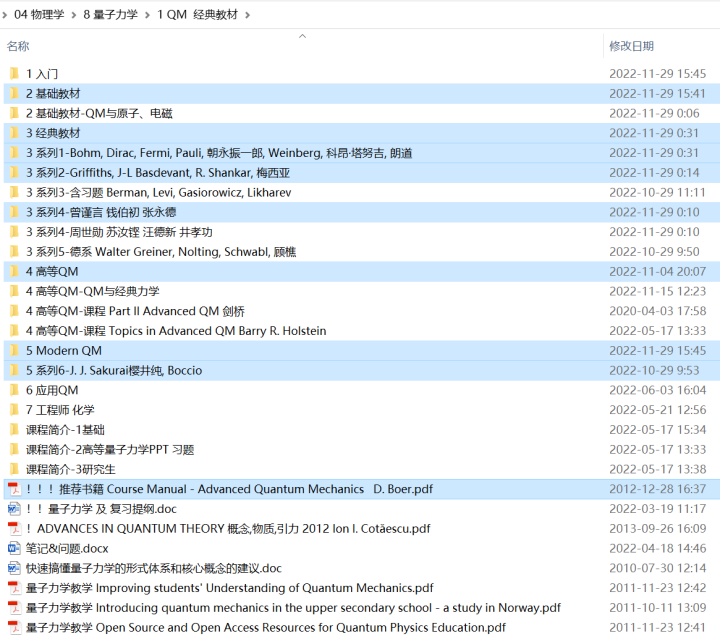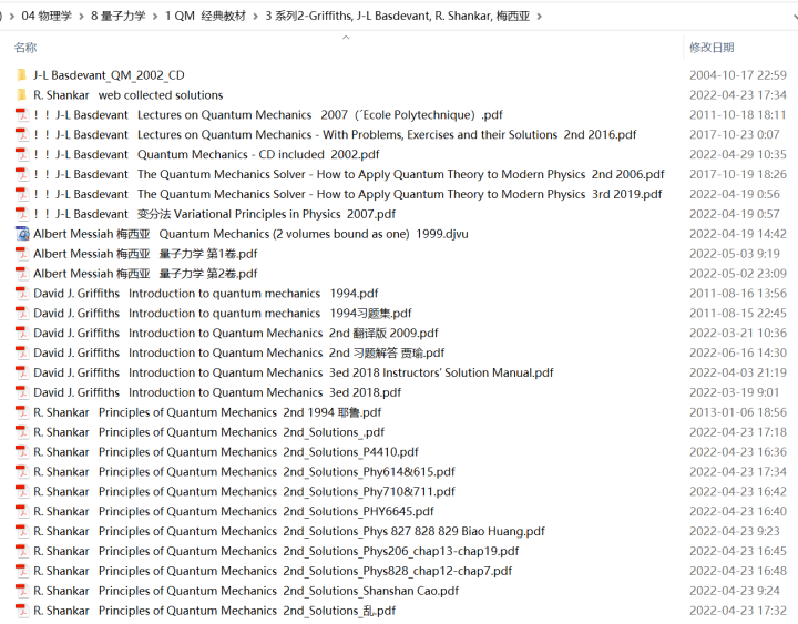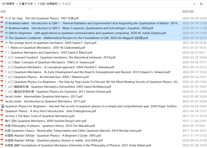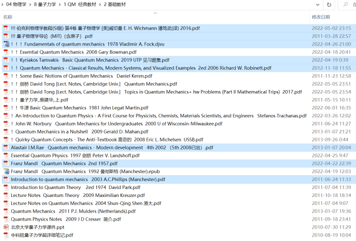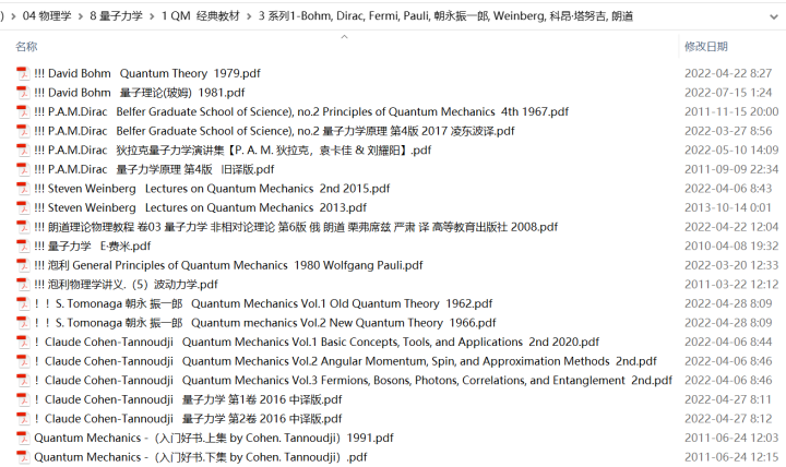 传说中,四大力学中的量子力学,是要“量力而学”。为了帮助喜欢物理的小伙伴学好量子力学,在找书时省去大量时间和精力,这里给出最全的量子力学教材和关键领域分支的著作。教材分为不同层次:入门级、基础级、经典大佬教材、现代量子力学和高等量子力学。当然,一家之言,这里列出书库书目、书单推荐,仅供参考。