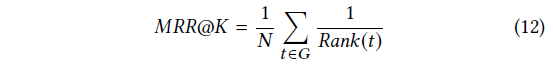MRR被定义为一个处于区间[0,1]内的标准化指标。当该指标数值呈现增长趋势时,则表示大多数'命中'项在推荐列表中的排序位置会相对靠前。这一变化趋势直接反映了相应推荐系统的性能表现。