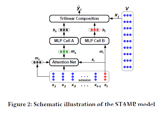 所提出的STAMP模型是基于短期记忆优先模型(STMP)构建的,如图1所示。