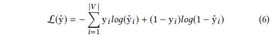 \hat{y} \in \mathbb{R}^{^{|V|}}表示模型的输出向量,代表一个概率分布覆盖每一个项目v_i \in V,每个元素\hat{y}_i \in \hat{y}表示的概率事件,第六项将显示为接下来点击在这个会话。对于任何给定的会话前缀S_t \in S (t\in [1,...,N]),损失函数被定义为预测结果\hat{y}的交叉熵: