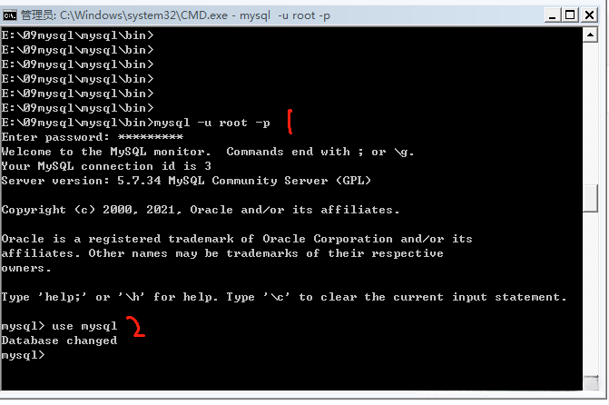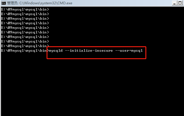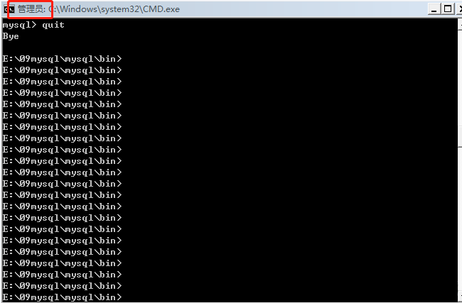 - 切换到mysql路径下,/D E:\09mysql\mysql\bin