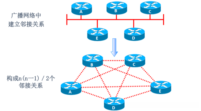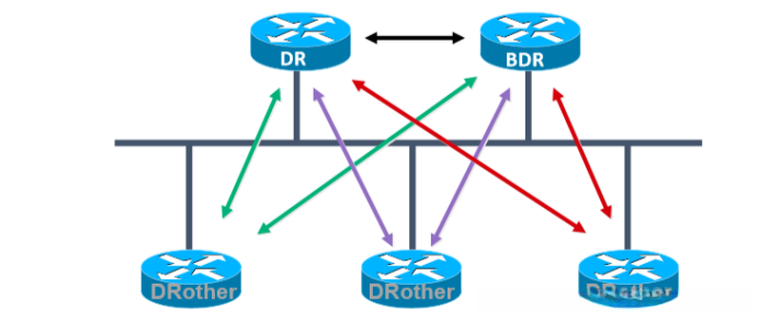 其他路由器(DRothers)只和DR及BDR形成邻接关系