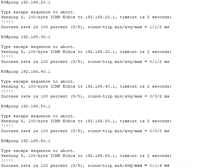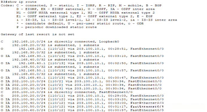 查看R3的ip route O本区域内的 IA其他OSPF区域内的路由