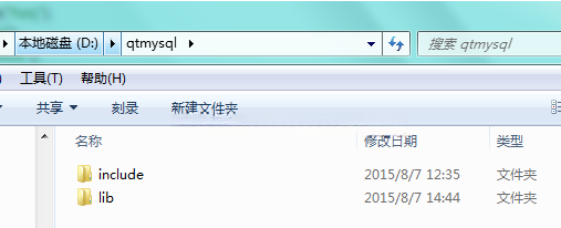创建一个新目录d:\qtmysql,并将下载完成后包含在该zip包中的include和lib目录进行复制到该位置
