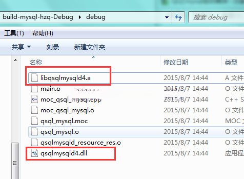 5.编译完成后在该工程的debug文件夹中将看到相应的.dll文件和.a文件。