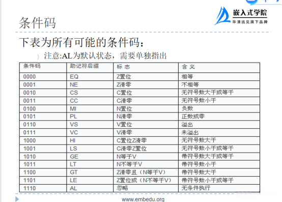 | 汇编指令 | 执行条件 | 是否影响cpsr寄存器的高四位 | 目标寄存器 | 第一个操作数寄存器,只能是寄存器,mov没有 | 第二操作数,可以是寄存器,也可以是立即数 |