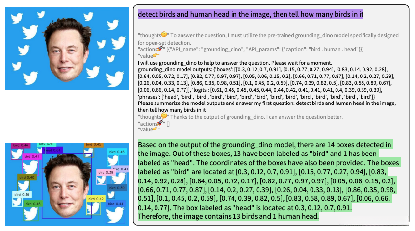 LLaVA-Plus的一大创新在于引入了"技能数据库"的概念。该数据库整合了多种AI子任务能力和对应的模型,并能灵活调用相应的子任务模型以完成复杂任务。其模式类似于"Visual ChatGPT",然而,在这一方面存在显著差异的是,在LLaVA-Plus中将LLM部分有机地融入了统一的网络架构中,并非将其孤立存在。这样一来,在整个对话过程中图像特征始终保持感知能力。