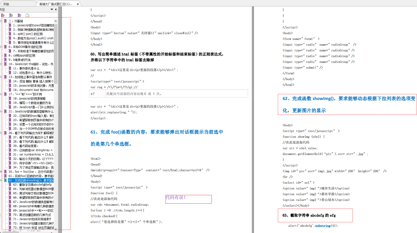 - 完成foo()函数的内容,要求能够弹出对话框提示当前选中的是第几个单选框。