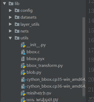 编译完成后生成的文件位于你运行的环境中(例如图中的site-packages\lib\utils),将该文件移动至fasterRCNN项目lib\utils目录所在的位置。