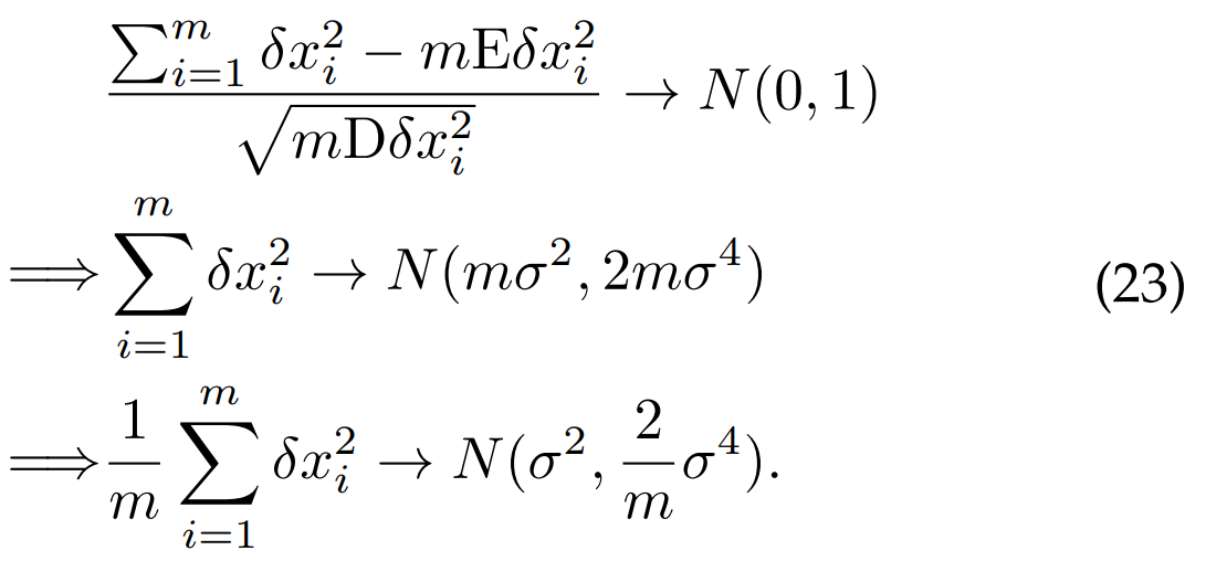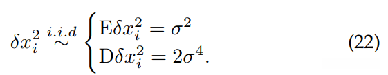 根据概率论,可以得到以下表达式。Eδx2 i = σ2和Eδx4 i = 3σ4。由于δx的每个分量在高斯分布中是独立和相同的,所以δx的每个分量的平方也是独立和相同的,具体来说。
