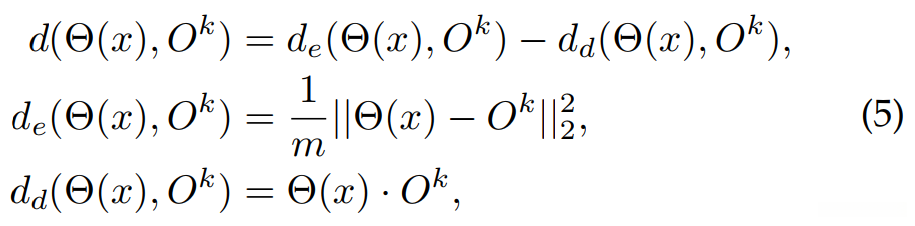 对于距离设置,与ARPL一样,也认为在优化过程中对嵌入特征与原型中心之间的欧氏距离进行表征是不够的。因此,本文也采用了ARPL的距离设置。具体来说,d(Θ(x); Ok)可以表示为