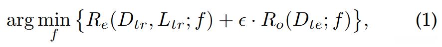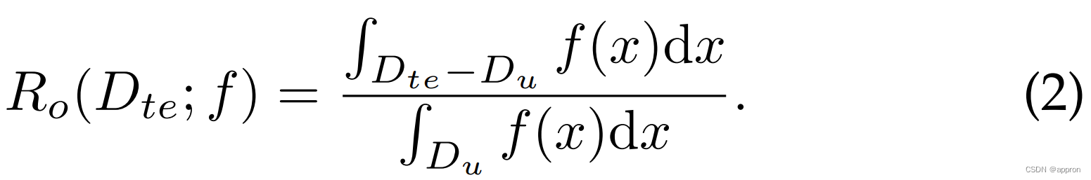 其中Re是经验风险,Ro是开放空间风险,是一个正的正则化参数,而f :Rd 7!N是一个多类识别函数。很明显,当x属于已知类时,函数f应该将原始数据x映射到其中一个标签f1; 2; ::; Ng,当x属于未知类时,将数据x映射到标签N+1。因此,开放空间风险Ro(Dte; f)可以进一步表述为