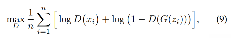 给定分布fz1; z2; - - ; zng和训练数据fx1; x2; - - ; xng,鉴别器D通过以下方式优化