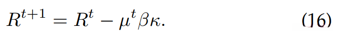 根据κ1和λ;β2(0;1),很容易以这样的方式挑选合适的值,使λ-βκ的值小于0。在公式(7)的优化下,半径R增加到R0的 "正运动 "后,在公式(14)的优化下将发生公式(16)所代表的运动。在这一点上,半径R开始减少,"负运动 "发生。为了确保这种 "负运动 "能够有效启动,参数κ应该满足以下条件。