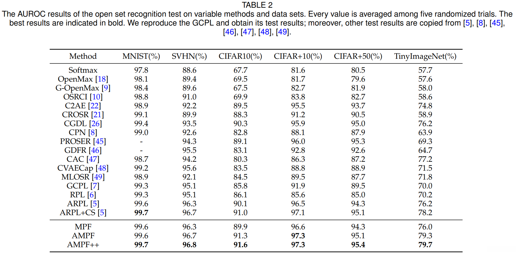 - 3)提出了AMPF的增强版,即AMPF++,通过在训练阶段看到更多的未知类数据产生,可以进一步提高OSR性能;