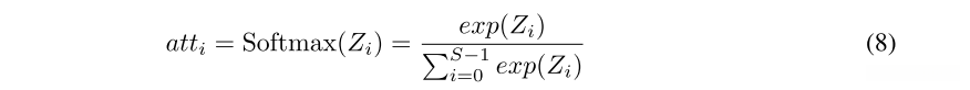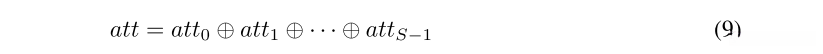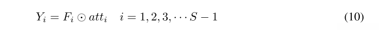 其中通过Softmax运算获得各尺度通道的重新加权系数...这些系数包含了空间域内所有位置的信息以及各通道内的关注权重值。经过这种设计,在本地与全局渠道注意力之间实现了有效的信息交互机制建立。随后将各通道经过重新加权后的注意力特征以串联的形式融合在一起,并完成拼接操作过程。这样最终构建了一个整合了各通道注意力信息的整体关注向量。