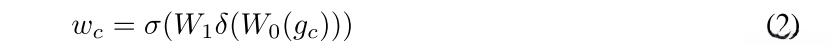 通过引入两个全连接层(...),我们可以提升各信道间关系处理效率的同时促进不同尺度特征间的互动。其中σ代表激活函数,在实际应用中常用Sigmoid作为激活函数。借助激活机制,在信道间交互完成之后赋予各信道一个权重系数(...),从而使得信道间能够更加高效地融合特征。