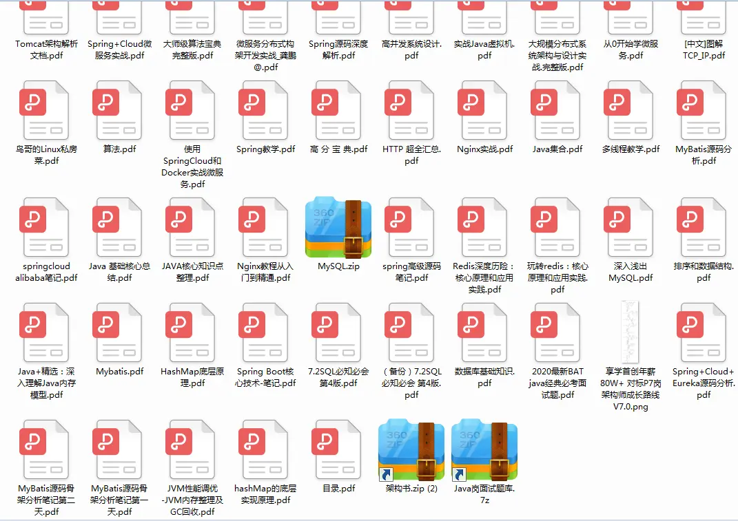 作为一名过来人,在过去的时间里我一直在收集并整理大量进阶架构视频资料、面试文档以及PDF的学习资源;根据上述系统大纲安排的内容需求, 我才能提供相应的学习视频资源