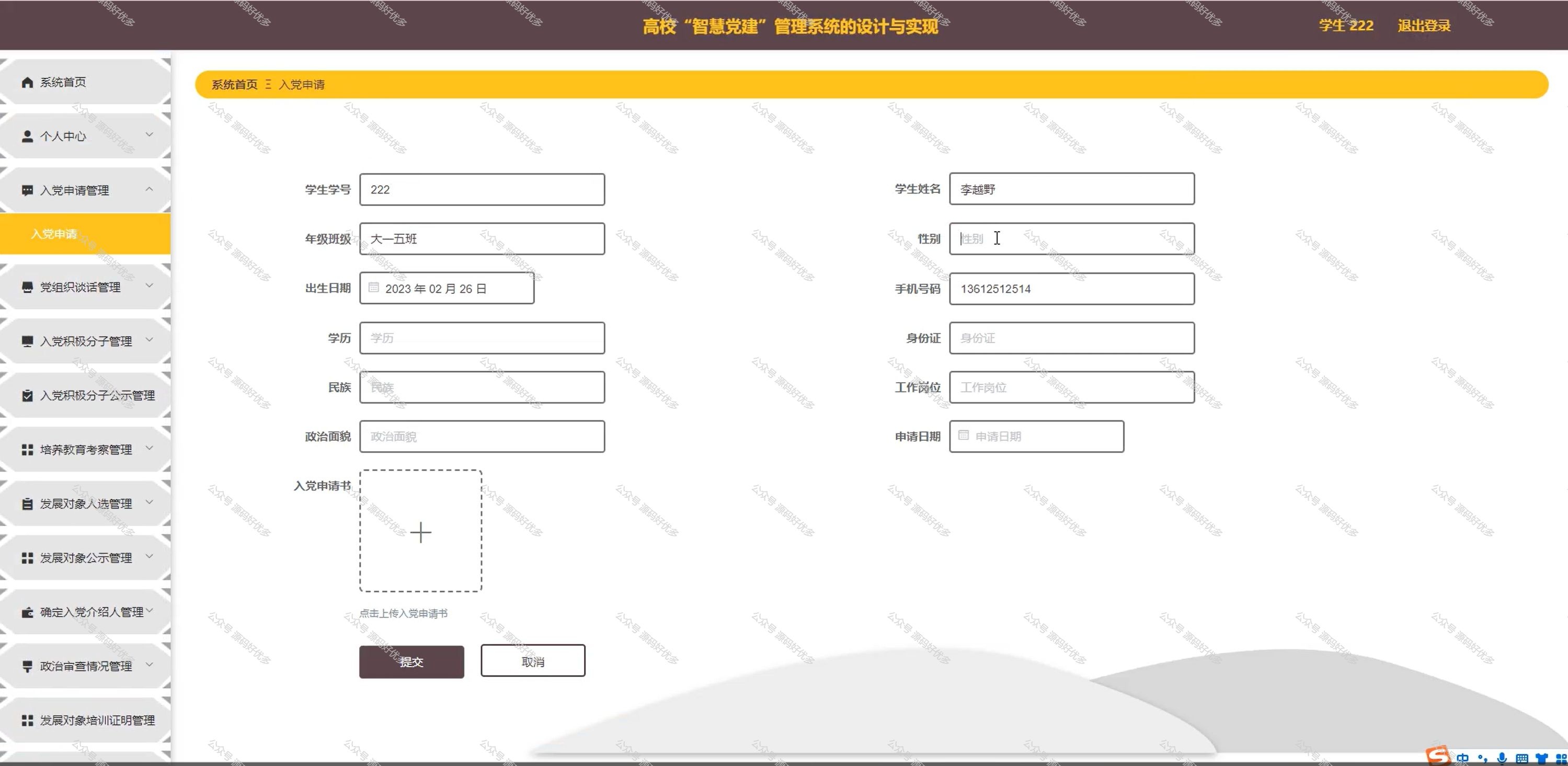 学生功能包含但不限于以下几大模块:登录页面、个人信息管理区、入党材料归档处、谈话记录存档区、发展对象培养档案、公示信息展示台、考察记录管理系统、人才考察评估室、发展对象审核通道、公示标准制定地、审查记录查询室以及培训证明存档库等业务范围