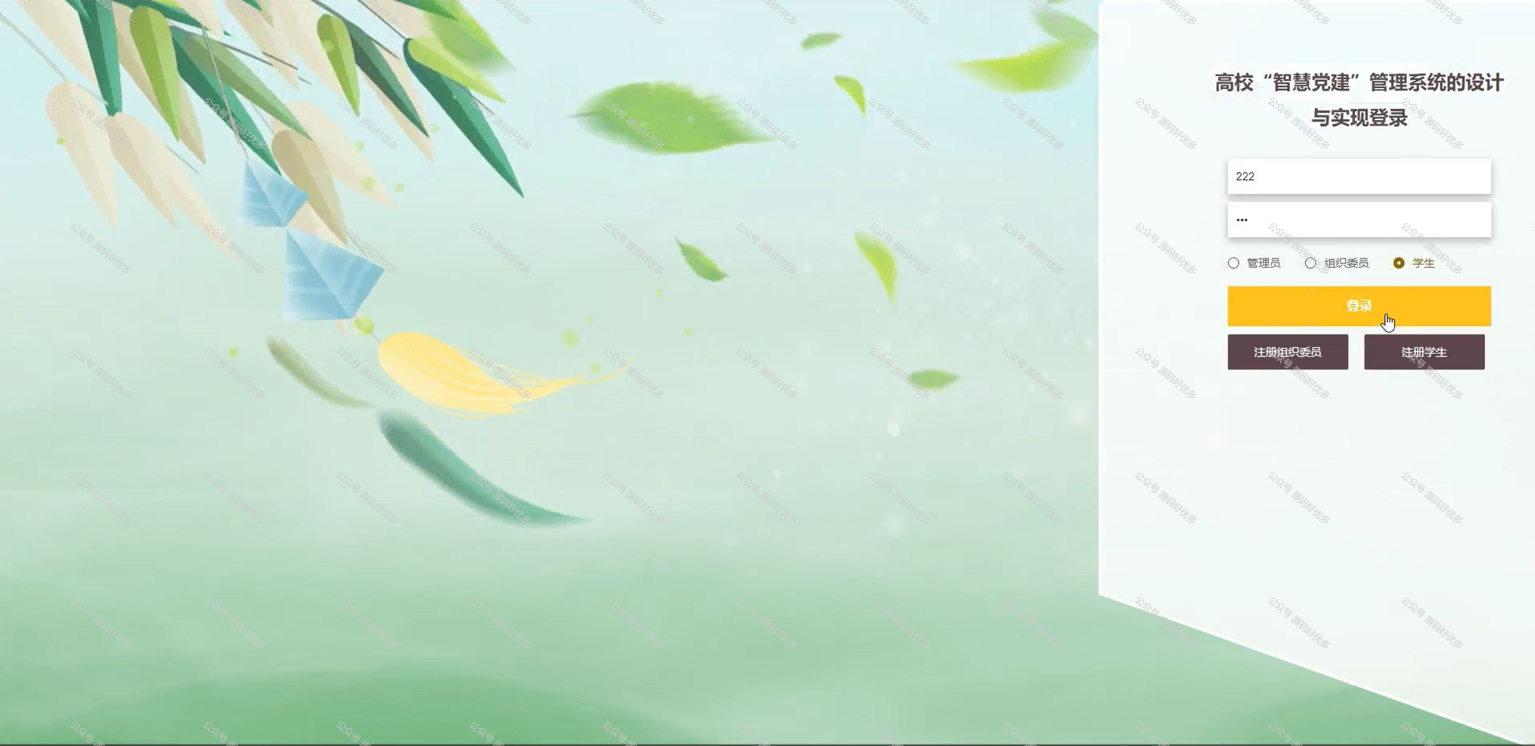 智慧党建系统的建立背景在于响应新时代党的建设总体要求。通过现代信息技术手段来提高高校党建工作的科学性、规范性和智能化水平。系统整合党务管理平台、党员教育系统以及组织生活记录等多方面功能模块,在实现党建工作资源的优化整合与高效配置的基础上促进高校党组织工作创新发展的进程。该系统不仅提升了党建工作效率还进一步强化了党组织的凝聚力与战斗力水平。