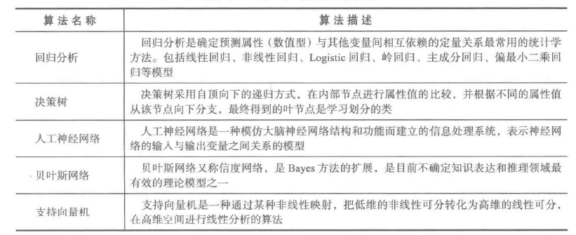数学模型和之前描述的任务目标类型往往是一致的,常见的分类与预测算法如下表所示。
