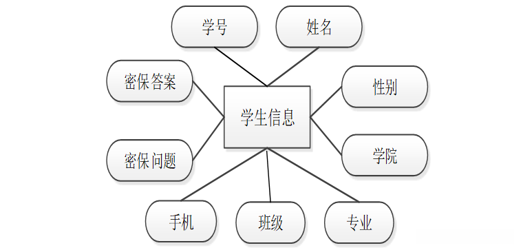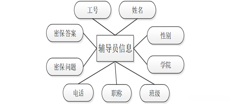这一系统可以分成四种类别的用例实体模型,分别是学生、辅导员、教务处和管理员。这四个角色的作用将在下面详解和叙述。