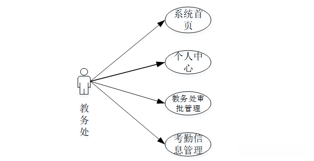 主要使用者为教务处。具备有:系统首页、个人中心、教务处审批管理、考勤信息管理的功能。教务处用例图如图3-3所示。