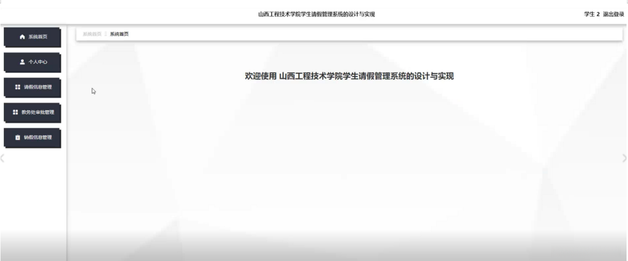 学生登录系统后,可以对统首页、个人中心、请假信息管理、教务处审批管理、销假信息管理等功能进行相应操作,如图5-11所示。