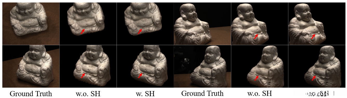 Ablation study of the per-Gaussian SH coefficients on the DTU scene.