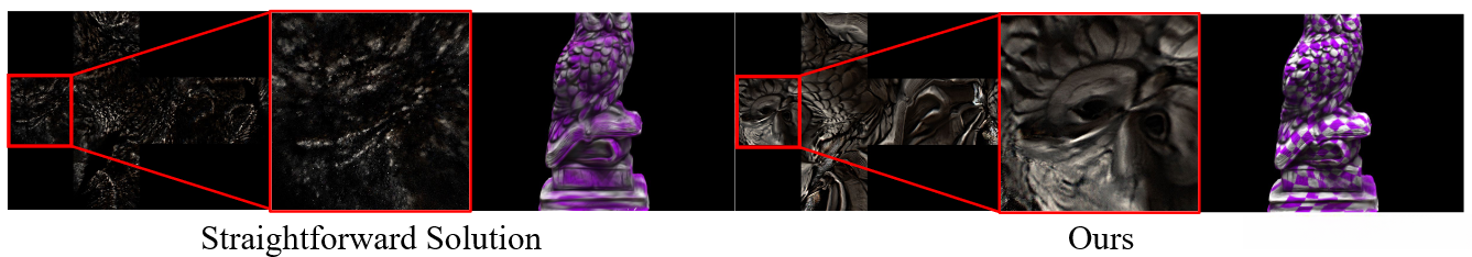 Due to the limited representational power of the UV mapping MLP, our method fails to learn a uniform and reasonable texture space for objects that have thin plates or holes , thereby hindering downstream applications.