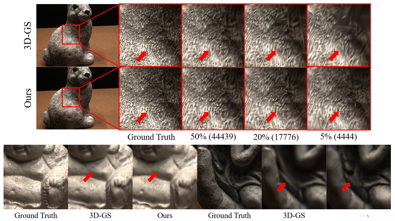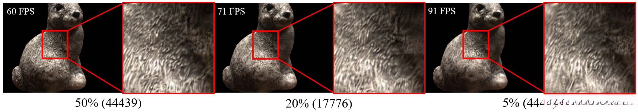 Visual comparison of our method with different numbers of 3D Gaussians.