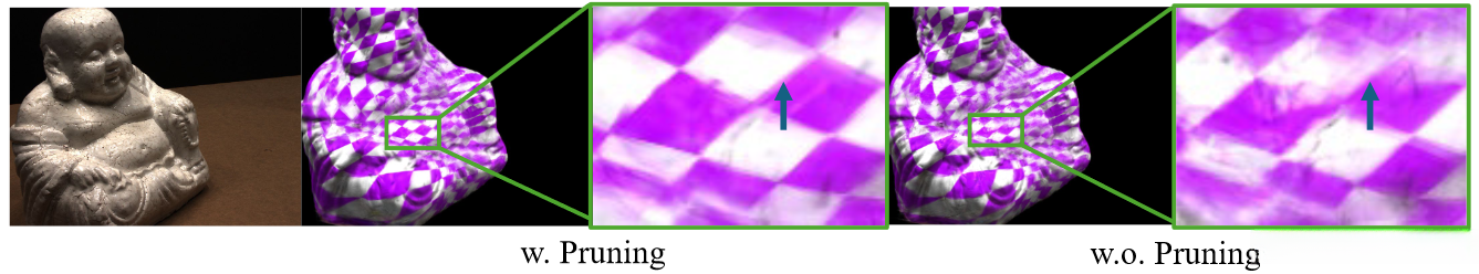 Ablation study of the pruning strategy during 3D Gaussian optimization.
