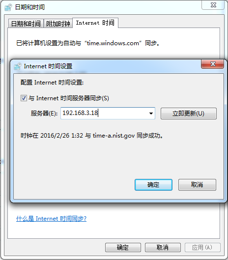 若要手动完成时间同步操作,则可通过以下方式实现:首先在Windows 7或Windows 2008及以上版本系统中单击屏幕右下角的时间显示区域;而在Windows XP、Windows 2000以及Windows 2003系统版本中则需双击该区域。随后在弹出的时间同步设置对话框中找到"internet时间"一页,并单击上级NTP服务器按钮;最后点击"立即更新"按钮即可完成设置。