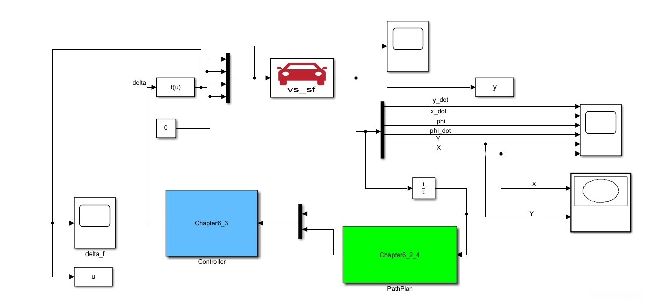 相较于其他控制策略,MPC因其简洁性和实用性脱颖而出。它基于假设:系统的行为可用线性模型精确刻画,并通过优化算法求解最优控制序列以实现预期效果。在自动驾驶领域中,MPC展现出良好的路径跟踪性能,在高速行驶及复杂环境下的适应性尤为突出。具体而言,在实现过程中首先需要建立汽车的线性模型;随后设定优化目标函数作为评价标准;最后通过迭代计算过程得到最优控制序列以完成控制任务。