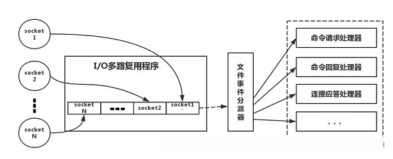 参照上图,简单来说,就是。我们的redis-client在操作的时候,会产生具有不同事件类型的socket。在服务端,有一段I/0多路复用程序,将其置入队列之中。然后,文件事件分派器,依次去队列中取,转发到不同的事件处理器中。需要说明的是,这个I/O多路复用机制,redis还提供了select、epoll、evport、kqueue等多路复用函数库,大家可以自行去了解。