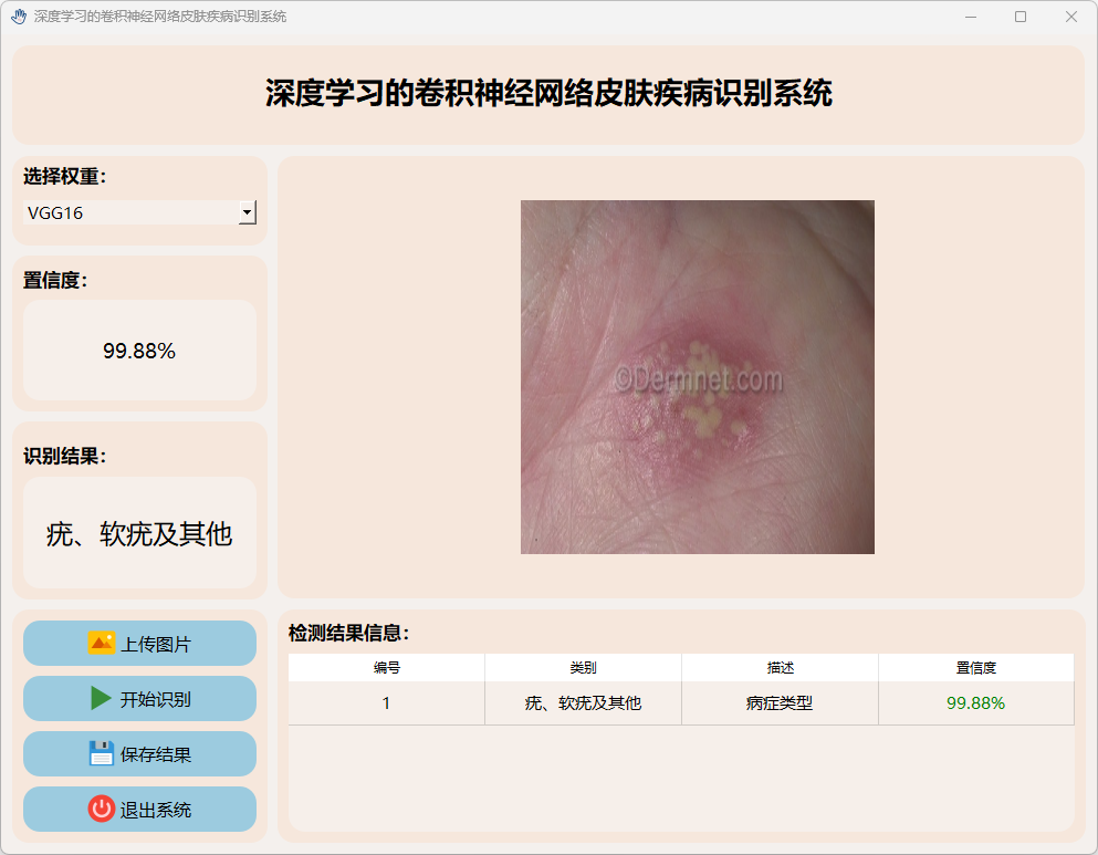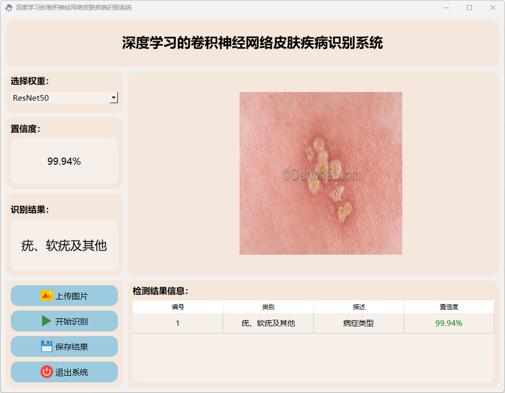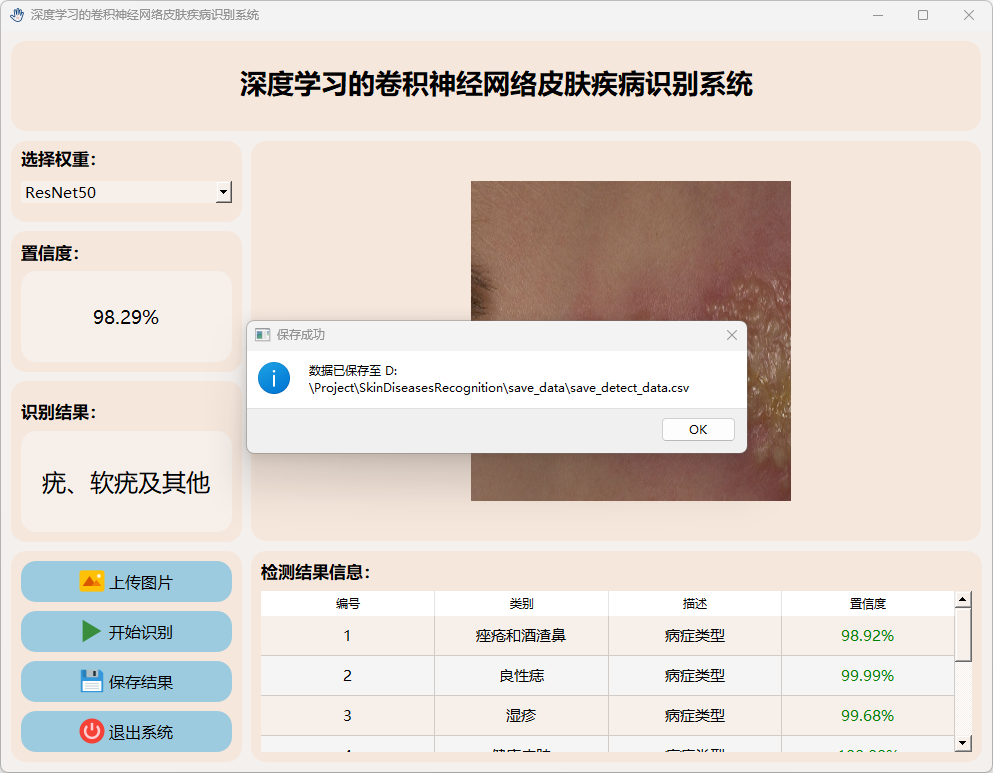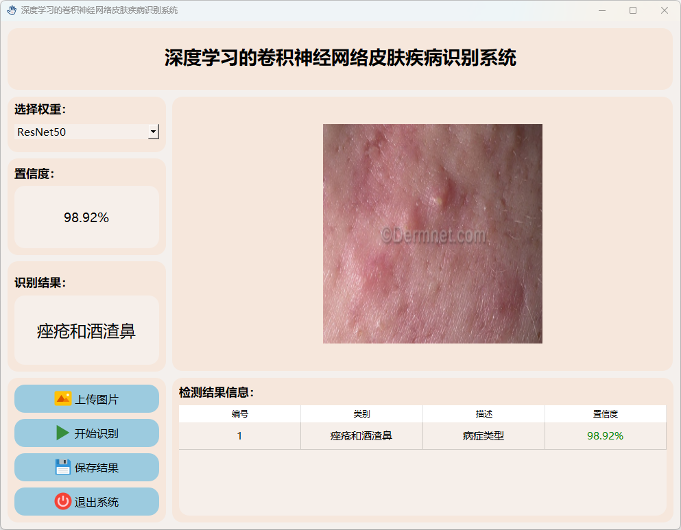 基于深度学习的卷积神经网络皮肤病识别系统(PyQt5界面+数据集+训练代码)