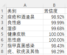 (2)改进方向:通过优化数据集质量或提升模型性能得以降低痤疮与酒渣鼻相关分类错误的可能性;同时需要更加深入地提高对不同类型痣的鉴别水平。