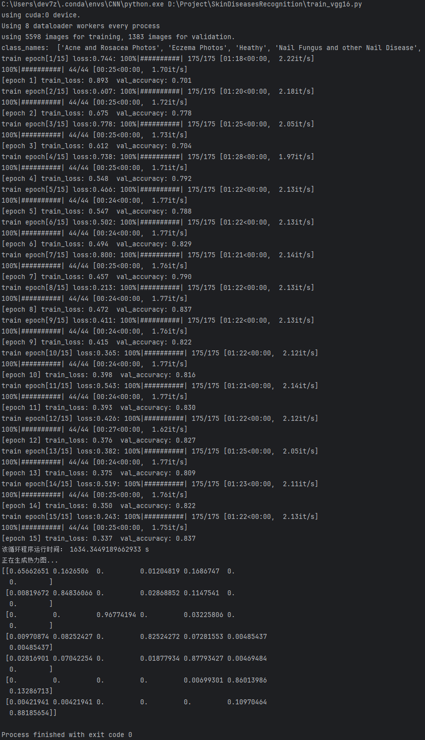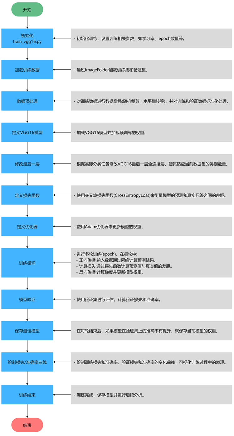 这张图展示了使用VGG16进行模型训练的详细过程和结果。