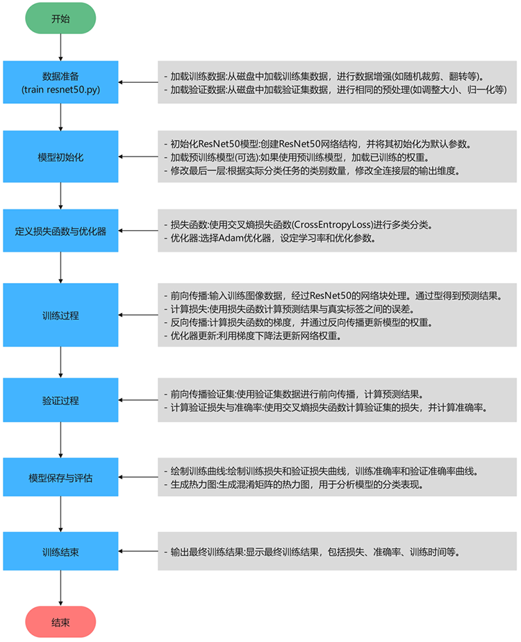 这张图展示了使用ResNet50进行模型训练的详细过程和结果。